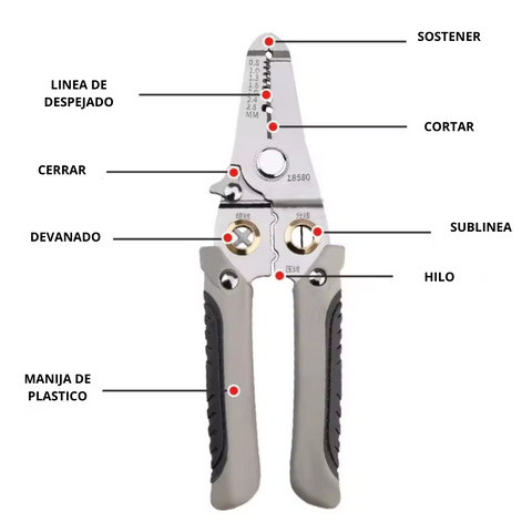 El Alicate Multifuncional é uma ferramenta indispensável, perfeita para uma variedade de tarefas, desde reparações caseiras até atividades ao ar livre. Combina múltiplas funções em um design compacto e robusto.Ideal para aficionados de bricolage e profissionais iguais, este alicate multifuncional é uma solução completa para suas necessidades de reparação e manutenção.CARACTERÍSTICAS DO PRODUTO- Design compacto e ergonômico.- Múltiplas ferramentas integradas para diversas aplicações.- Fabricado com materiais de alta qualidade para durabilidade e resistência.- Fácil de usar e transportar, ideal para uso em casa ou em movimento.ESPECIFICACIONESEstilo da manga: RectoMaterial: Acero templadoTamanho: 190 x 50 x 45 mmSE ENTREGA CON- 1 Alicate Multifuncional.