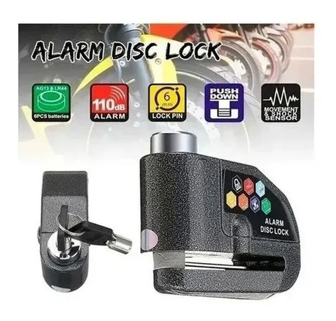 Candado de disco con alarmaESPECIFICACIONES DEL PRODUCTO:Candado Moto Freno De Disco Lk 603 Original Calidad Premium¡Seguro de alta calidad para tu medio de transporte!¡Aumenta tu seguridad! Este pequeño candado te ayuda a aumentar la seguridad de tu medio de transporte cuando tienes que estacionar en la calle. Su poderosa alarme te permitirá saber si alguien intenta mover tu moto o bici y su robusta constitución te brinda seguridad.CARACTERÍSTICAS DEL PRODUCTO:- Alarma: 110dB.- Baterías: 6xLR44 tipo botón.- Llaves: 2- Impermeable: Si- Material: Acero inoxidable.- Dimensiones: 8.6 x 6 x 3.3 cmTE ENTREGAMOS:1 - Candado para disco con alarma2 - Llaves GARANTÍATIENES 30 DÍAS DE GARANTÍA POR FUNCIONAMIENTO.